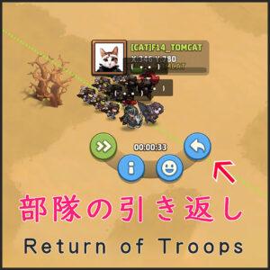 部隊が行進中に引き返す操作方法 世界画面上で左上に「部隊アイコン」を選択すると移動中の部隊が画面中央に表示されます。 資源地でのバッティング防止や威嚇の行進で引き返す場合などに利用したりします。 部隊の行進速度ア…